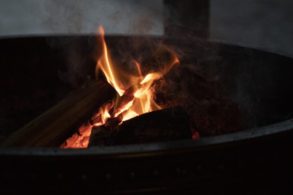 夜風を感じながら、焚き火の炎をぼんやり眺める時間は格別です。
